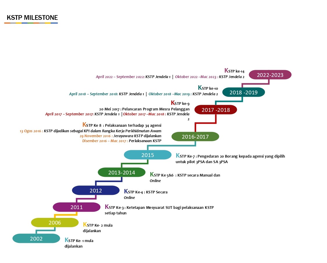 Sejak diperkenalkan pada tahun 2002, KSTP telah dilaksanakan sebanyak sembilan (9) kali seperti di Jadual 1.  Bermula pada Disember 2016, KSTP dilaksanakan mengikut tahun kewangan.  KSTP bagi tahun kewangan 2017-2018 ini merupakan kali ke-9 diadakan.  Terdapat dua (2) pendekatan telah digunakan sejak pelaksanaannya iaitu secara manual dan juga online.
